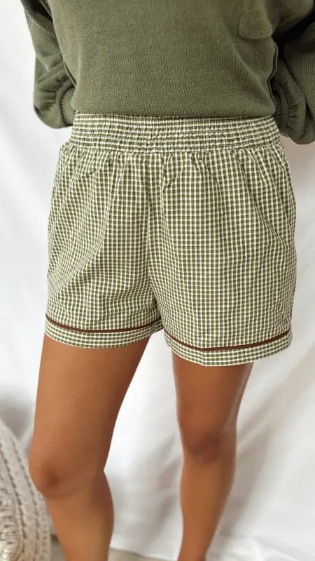 Bring a splash of cozy charm to your lounge time with The Butterscotch Boxer Shorts. Featuring a fun green and brown plaid pattern accented by smooth brown trim, these boxers blend comfort with a playful style.